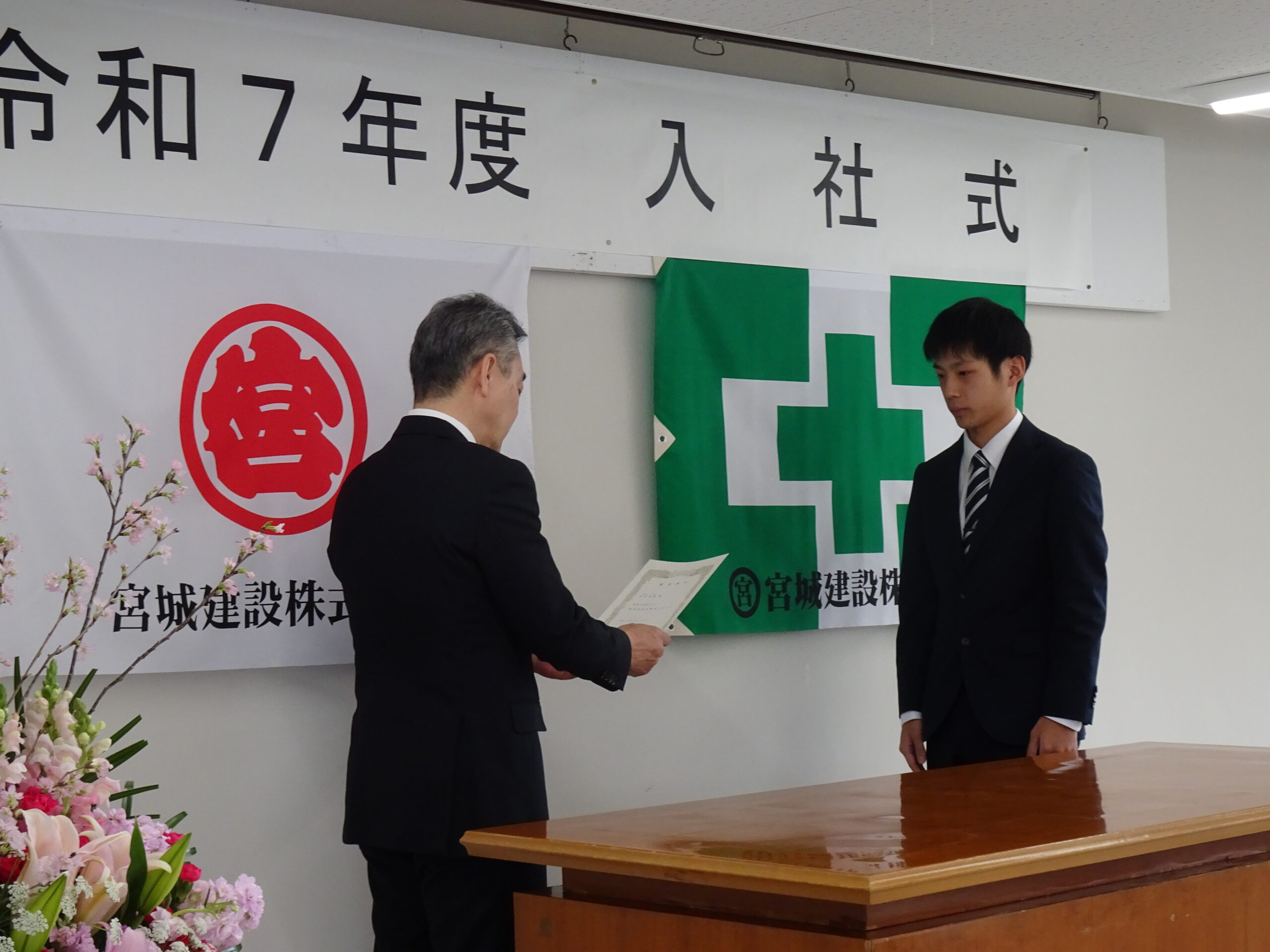 新着情報 令和7年度 入社式を執り行いました 2025年4月1日 2025年4月10日 令和7年4月1日、本社大会議室にて、「令和7年度 入社式」を執り行いました。 本年の新入社員は全員で4名、今日から約1か月の研修を経て、各部署に配属となります。 とても緊張した表情を浮かべてはおりましたが、1人1人に抱負を述べていただきました! 皆さんが一人前になり、当社で活躍している姿がとても楽しみになりました! 午後は佐々木専務からの講話と各事務所に挨拶回りに行きました。 少しずつ会社に慣れていき、たくさん笑顔が見られたらと思います。