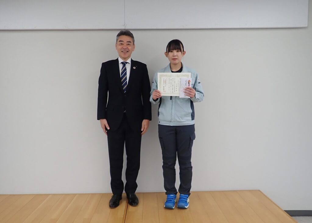 新着情報 令和6年度 第39回 社内技術発表会 が開催されました 2024年11月8日 2024年11月8日 令和6年10月18日、第39回 社内技術発表会が開催されました。 今年度は5名の発表者が経験した工事や業務での技術を発表いたしました。 優秀賞第1位として下斗米 栞さん(土木部 資機材管理課)が表彰されました。おめでとうございます! 発表者の皆様、大変お疲れ様でした。 今後とも社内全体で技術開発に尽力して参ります。